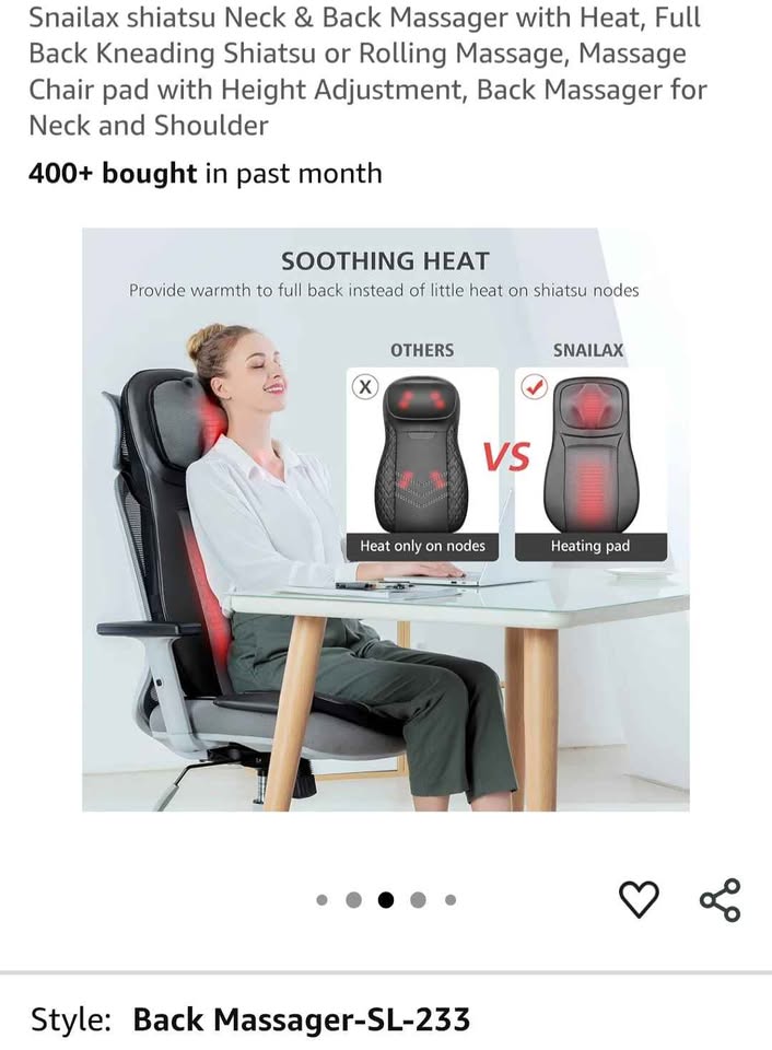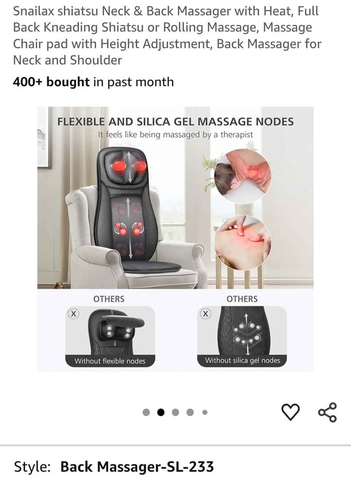 Relax and unwind with the Neck and Back Heat Massager, your new best buddy for melting away tension. This cozy massager delivers soothing heat and gentle kneading to ease muscle stiffness and stress. Perfect for those busy days when your neck and back need a little extra TLC—just sit back, switch it on, and let the comfort take over. Say goodbye to aches and hello to happy muscles!