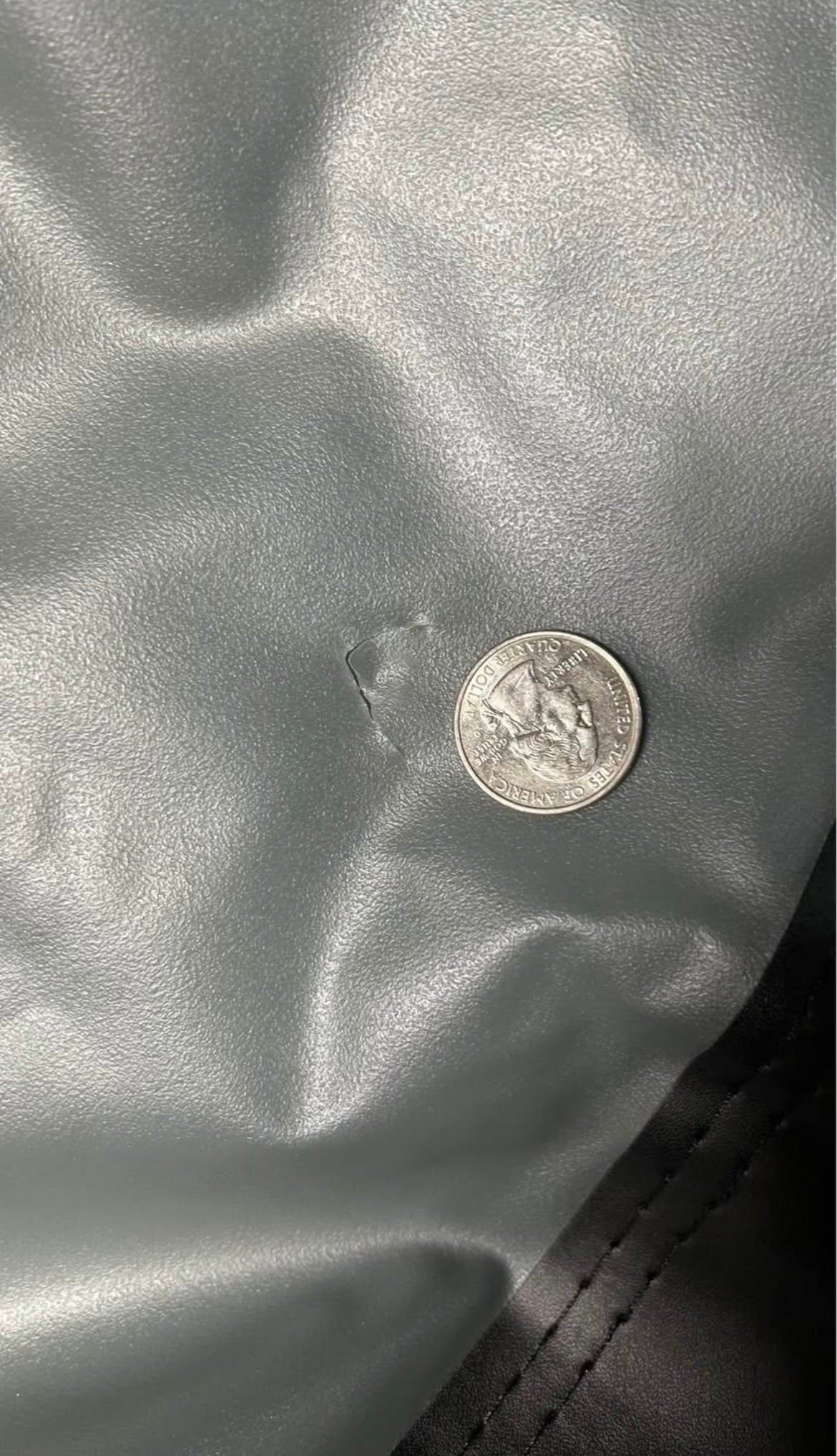 * two quarter sized holes in the left and right corner. Does not effect functionality and could be patched