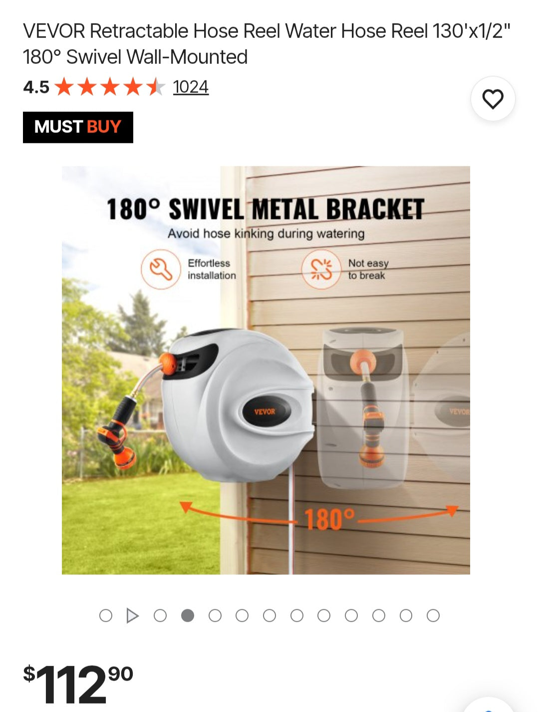 Simplify your lawn maintenance with the Vevor Retractable Hose Reel! This 130ft hose reel makes watering and cleaning a breeze, while the retractable feature keeps your space tidy. Say goodbye to tangled hoses and hello to more free time (and a happier garden) with Vevor!